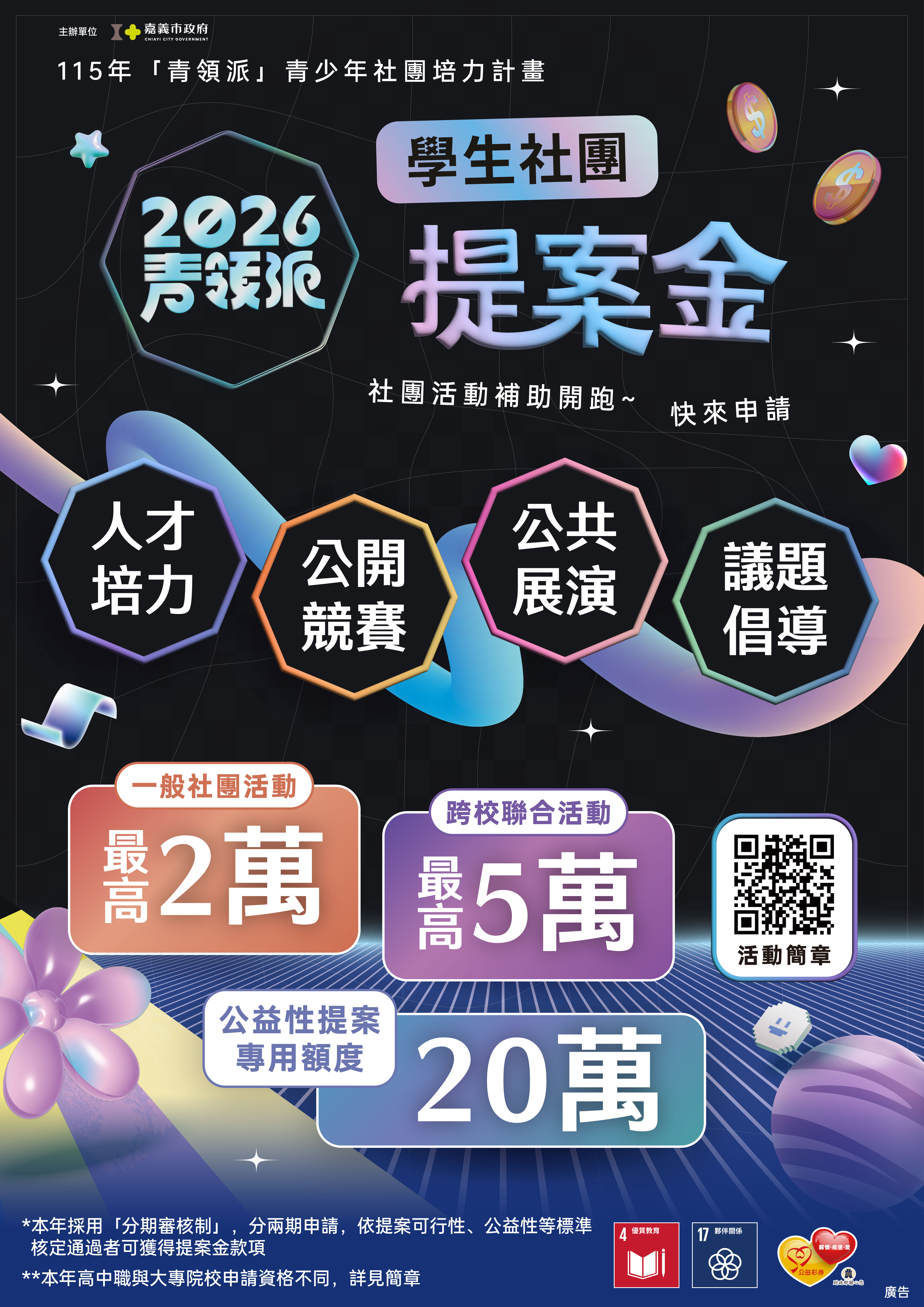嘉義市政府 115 年「青領派」青少年社團培力計畫-學生社團提案金